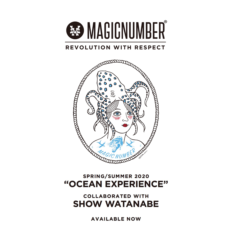 【MAGIC NUMBER × SHO WATANABE コラボレーション】 以前からも親交があり、これまでも数々のコラボレーションを重ねてきたアーティスト渡部 将氏との新たなコラボレーションアイテムがリリース。 今シーズンのテーマ 【OCEAN EXPERIENCE】 。